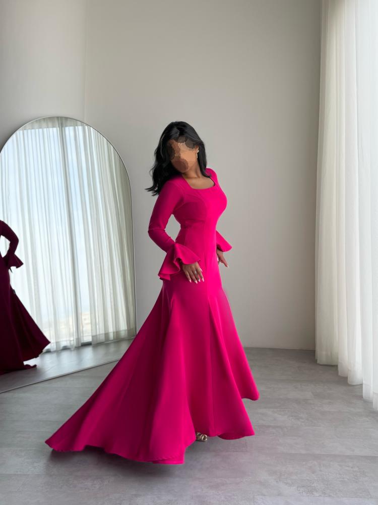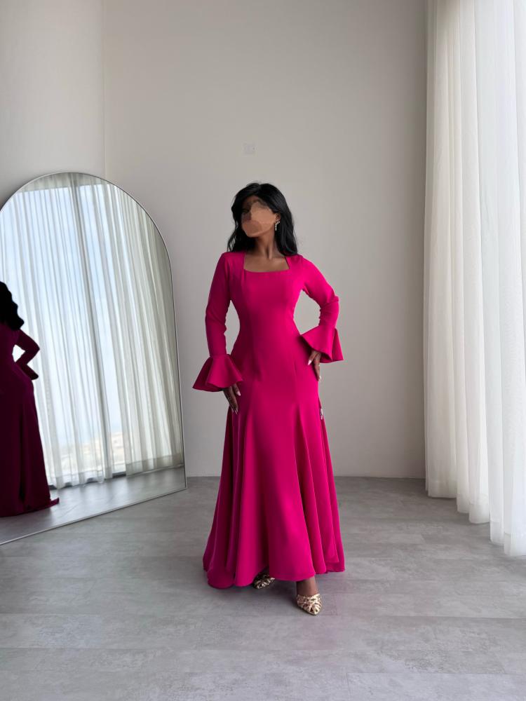 فستان بقصة انثوية جميلة نوع القماش كريب باربي