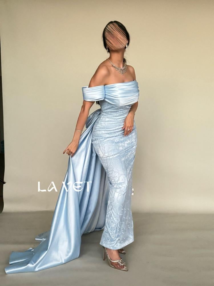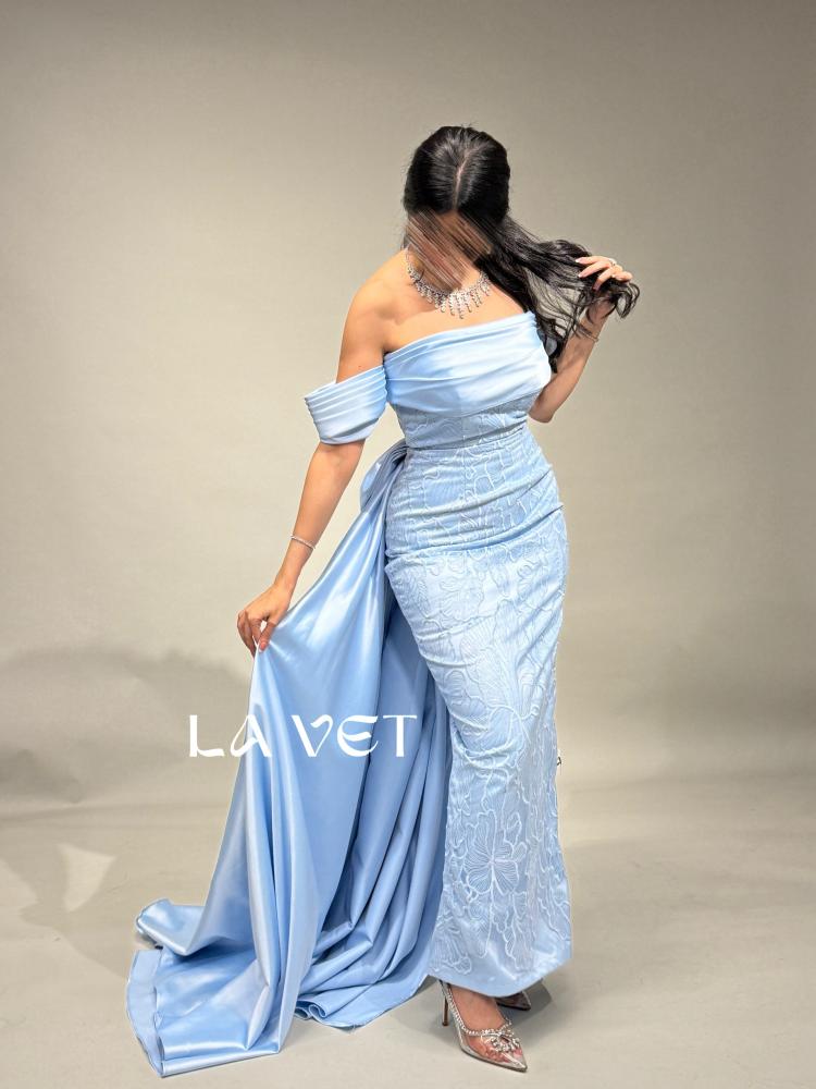 الفستان مصنوع من قماش دانتيل تل فرنسي مطرز بترتر، ناعم ويعطيك إطلالة جذابه .. القماش ينساب برقة على الجسم ويعطيك طلة فخمه
