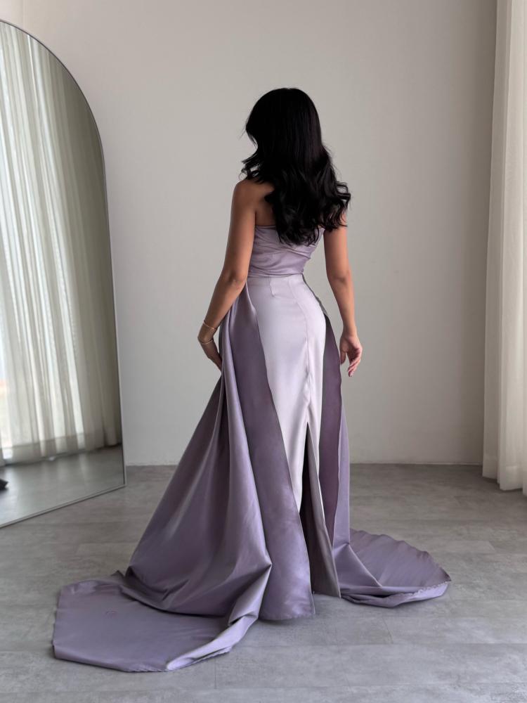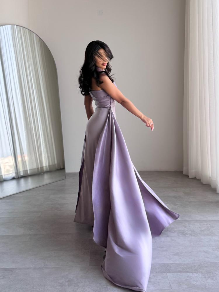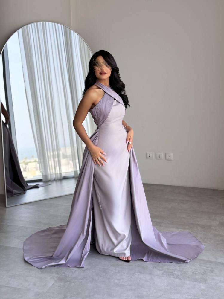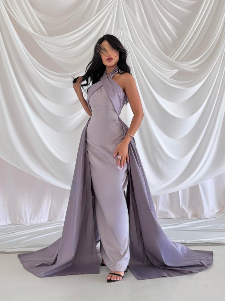 فستان مزيج من قماش التفتة الإسترتش والشانتون
